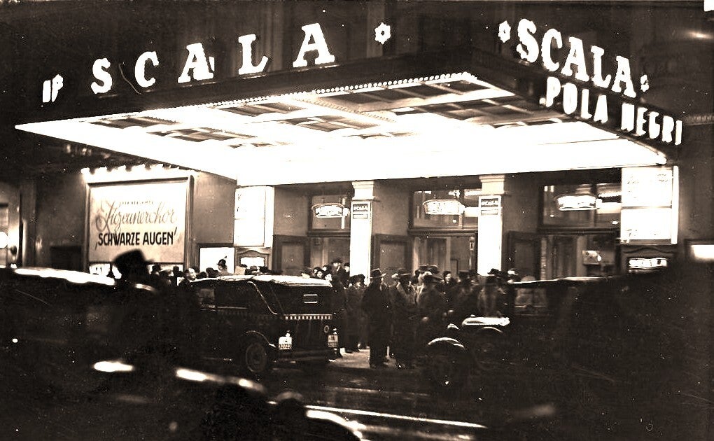 In den 1920er Jahren erlebten Varieté Theater ihren Höhepunkt der Eleganz und Unterhaltung. Neben dem Wintergarten, dem Admiralspalast gehörte die Scala zu den berühmten Häusern der Stadt. Aus einer bunten Mischung aus Artistik, Musik, Tanz und Comedy in sehr aufwendigen Bühnenbildern und üppigen Kostümen zog es Massen an Publikum an. Zu den beliebten Darbietungen gehörten internationale Stars, wie der Violinist Barnabás von Gezý, der Kapellmeister Bernhard Etté, die Scala Girls, der Clown Grock und der italienische Jongleur Rastelli. Die Comedian Harmonists, Claire Waldoff traten hier auf.