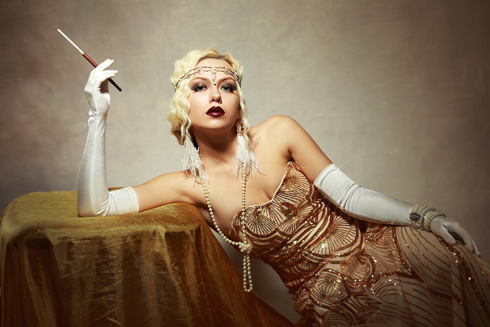Flapper trugen kurze, gerade Kleider, oft mit Fransen oder geometrischen Mustern und sie trugen Bubikopf. Ihr Make-up war auffällig, mit betonten Augen und Lippen. Sie tanzten den Charleston, tranken Alkohol und genossen das Nachtleben in Jazzbars und Clubs.Flapperinnen stellten einen deutlichen Kontrast zur traditionellen Weiblichkeit ihrer Mütter und Großmütter dar. Ihr Lebensstil war von Selbstbewusstsein, Unabhängigkeit und einem gewissen Maß an Rebellion geprägt.